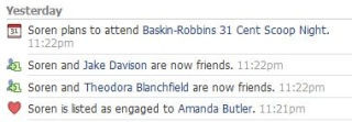 That McCain aide who just got fired for circulating that nasty video on his Twitter feed just won't stop using the internet! Or going about his life. Last night, he celebrated spoiling his bright future defending war with countries starting in "Ira" by... getting engaged to his longtime girlfriend. And to top it all off, announcing his intention to go to Baskin-Robbins. (Ha, see what we did there?) Click for the whole awesome screengrab.