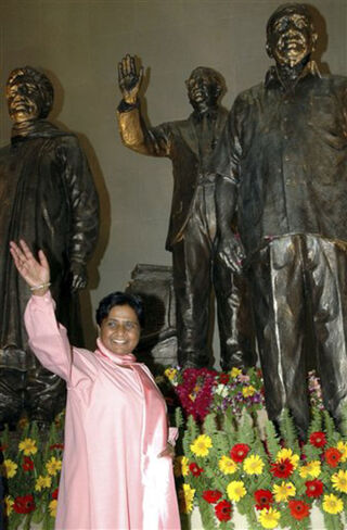 Mayawati is a 5-foot tall chief minister of the northern Indian state of Uttar Pradesh. She had a 12 foot bronze statue of herself replaced with a larger one because it was 3 feet shorter than nearby statues of other leaders. She didn't want to get short changed, okay? But! The cost of two statues? $950,000. As CBS News reports, that's "no small fee in a region of India notorious for its bad roads, spotty electricity and endemic poverty." Still, Mayawati is a heroine to dalits, "the so-called untouchables" on the bottom of the caste system, who have faced centuries of often violent discrimination. So she'd better be represented properly! [CBS News]