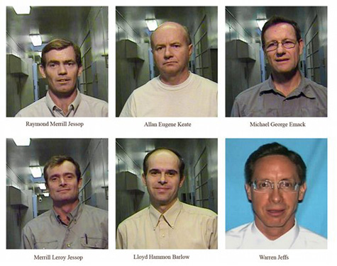 . Five of them, including sect leader Warren Jeffs, were indicted last week on charges that they had sex with minors. The sixth man, Lloyd Hammon Barlow (middle guy in the bottom row) was only charged with failing to report three cases of abuse. These are the first indictments of anyone since Texas authorities raided the camp in April, which sort of makes you wonder exactly why the legal bar is higher for an indictment on misdemeanor charges than it is to remove 440 children from their homes. [AP