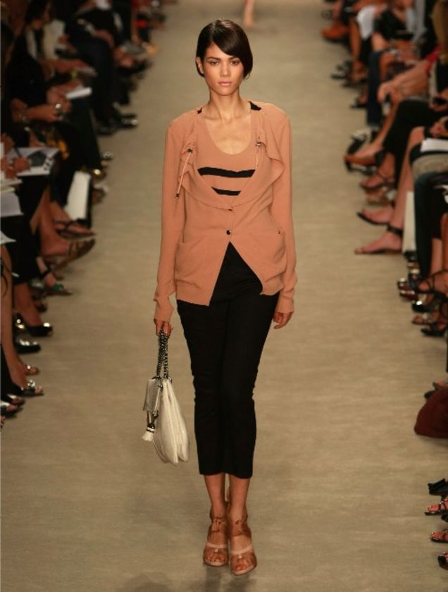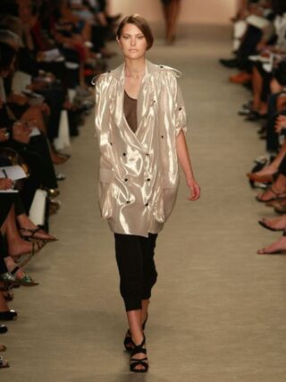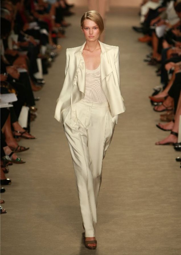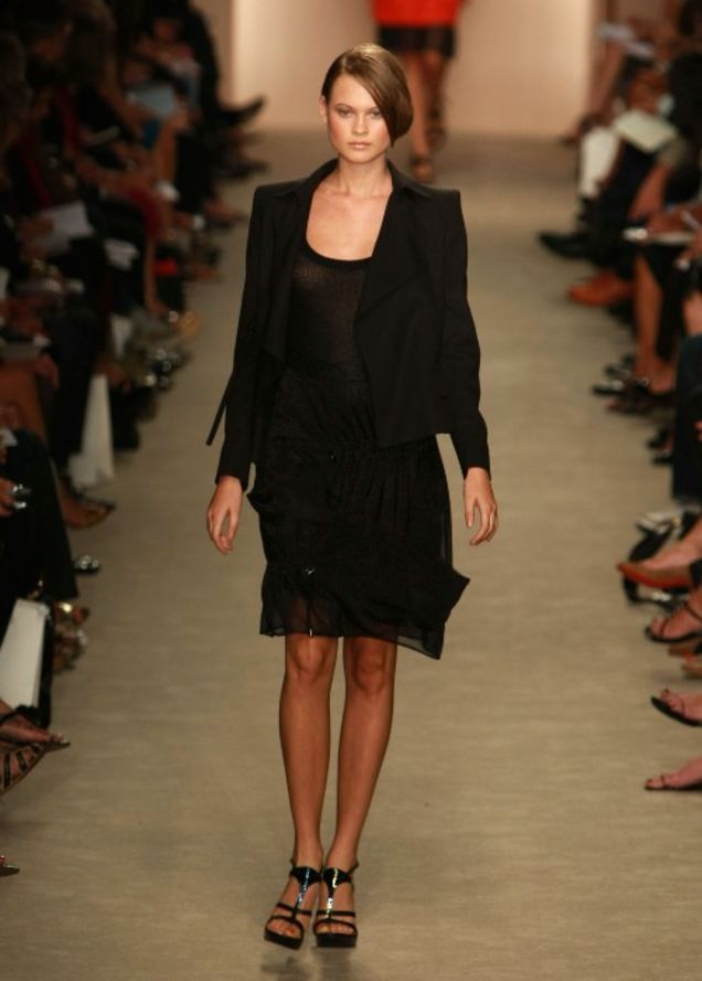 Derek Lam is known for hearkening back to power dressing with his crisp, sporty pieces, so it's funny that now that everyone else is going 80s, Lam jumped it up a decade: from the styling to the clean lines to the palate, this Spring collection felt totally, well, 90s! And while this was basically refreshing, there were moments when he definitely channeled some kind of horrible Germanic LizSport hybrid that brought back less fond memories of the late decade. What say you? Click the photo at left for a gallery; then click any picture to start the show.