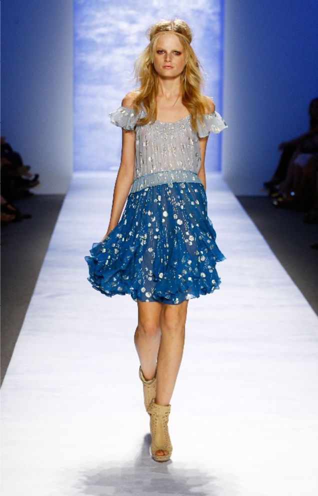 I was gonna live-blog this for ya, but that's kind of hard to do when you're in "standing seating" and sort of overwhelmed by how young the models are! I read the designer's description of "The Rebecca Taylor girl for Spring 2009" as "a bohemian world traveler...she mixes her inherited couture pieces from her French actress mother with great finds gathered from exotic locations around the globe." If one of those locations was "1985" I guess I can see that! Because there were several flat-out 80s animal prints along with the more expected romantic boho flowing shapes and dainty florals. Rebecca Taylor is a super-girly designer, and the flowy, flirty pieces were my favorites. What say you, kids? Post-jump!(Click on any image to begin gallery)