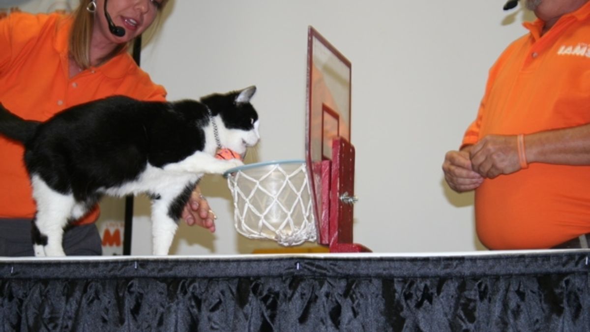From what I can tell, cat shows and dog shows couldn't be more different. It's like comparing apples to oranges... or cats to dogs, for that matter. Or so it would seem, as I roamed the floor of Madison Square Garden's Expo Center at this weekend's CFA-IAMS Cat Championship.Whereas a dog show has a pageant-like, almost sterile vibe wrapped up in etiquette and handler-glamor, a cat show is more like a flea market (no parasitic pun intended). Sure, it involves formal competing (a Russian Blue named Blade Runner took this year's top prize ), but the slow-moving, quiet judging is usually off in the periphery. It's the owners and their cats (often kept in gaudy gift-basket-like encasements) waiting in the middle who command center stage (so to speak). And damn it, that's where they belong. As I talked to people who've devoted their lives to their felines (and have the sweatshirts and Crocs to prove it!), I encountered none of the aloofness their pet of choice supposedly exhibits. In fact, all I had to do was point a camera at them to get them to talk all about their animals and the cat-show scene (it isn't catty, one woman assured me). No one even so much as hissed at me when I asked about the "crazy cat person" stereotype and whether it applied to them. Some of the friendliness no doubt stems from the fact that most of them are breeders and therefore salespeople, but I felt no pressure to buy after they'd given me some of their time and good humor. They're virtually dog-like! Which, bizarrely enough, is how many describe their cats. Video below. Related: 'Barack' Beats 'McCain' For Purrfect Presidency [MSNBC] Cats Being Cathletes: An Afternoon At The CFA-IAMS Cat Championship [Deadspin]