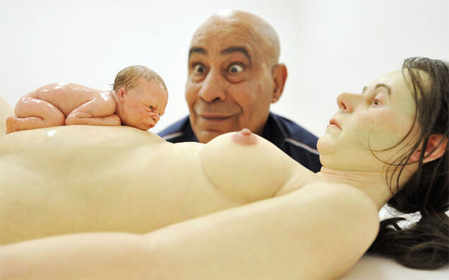 A man looks at the piece of art 'Mother and Child' by Australian artist Ron Mueck on show at the Museum Brandhorst in the southern German city of Munich on May 6, 2009. The new museum which shows works from the collection of Udo and Anette Brandhorst is set to open to the public on on May 21, 2009. AFP PHOTO DDP / OLIVER LANG GERMANY OUT (Photo credit should read OLIVER LANG/AFP/Getty Images)