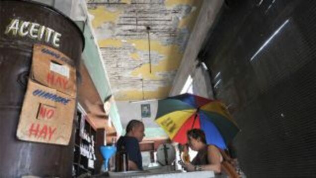 A Cuban woman asks for food with her ration book at a government store of the kind known as 'Bodegas', June 9, 2009, in Havana. The international economic crisis is forcing the Cuban government to reduce the supply of food, public transport and electricity in all the country, according to government officials. AFP PHOTO/STR (Photo credit should read STR/AFP/Getty Images)