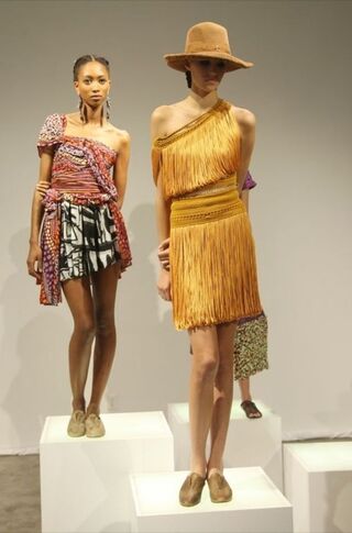 French-born Malandrino's event today wasn't a runway show, but a "presentation," meaning models lounged around; editors, buyers and celebs stopped by. What they saw were pieces that looked perfect for a a trip to Tahiti — via Paris.