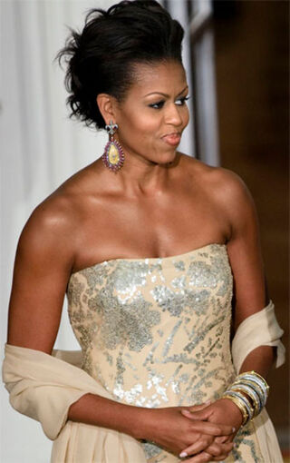 - Michelle Obama wore a sterling-silver sequined dress by Indian-born designer Naeem Khan to a state dinner in honor of India's prime minister. [USAToday]