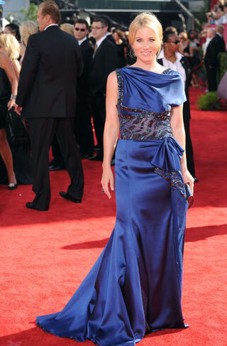 Christina Applegate's September 20th Emmy gown took a wedding-hall drapery, mated it with Elizabeth Berkeley's Showgirls wardrobe, gave it to Flora, Fauna and Meriwether to make without the aid of magic, and then pinned it in back like a Gap mannequin's. The result? Perfection. [Getty]