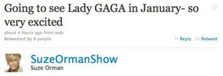 Today in Tweet Beat, Suze Orman is psyched for the Monster Ball tour, Lindsay Lohan loves gangsta rap, and Kelsey Grammer is trying to figure out this thing called Twitter.