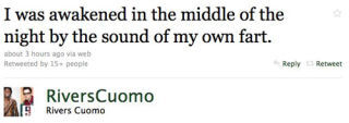 Today in Tweet Beat, Rivers Cuomo has nocturnal emissions, William Shatner is eating and driving, and Bow Wow chooses his choice.