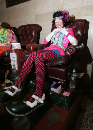 NEW YORK - MARCH 25: Clowns attend the 2010 Ringling Bros. and Barnum & Bailey Clown Shoe Shine at Eddie�s Shoe Repair on March 25, 2010 in New York City. (Photo by Dario Cantatore/Getty Images)