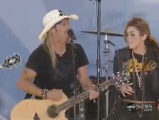 Today on GMA, Miley Cyrus and Bret Michaels performed "Every Rose Has Its Thorn." It was better than Miley's leaked solo version, but her head-thrashing dance moves and mouthing Bret's lines were definite thorns. Click to watch.