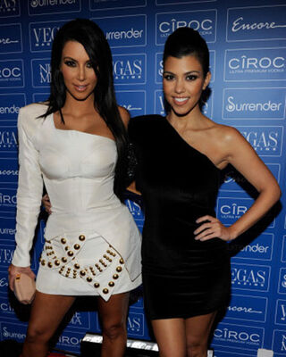 Kim and Kourtney obviously coordinated the asymmetry. Or maybe both were forced to come to the aid of a wounded traveler on the way and needed to make bandages out of their sleeves, in which case this is heroic.