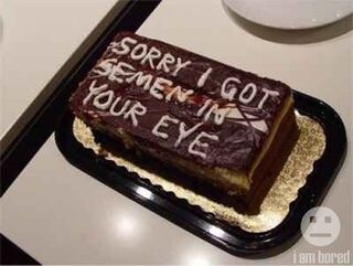 At Some Point, You'll Probably Deserve This Kind Of CakeMargaret Hartmann7/20/10 3:11pmFiled to: Frosting on the cakeSemen CakeSorry i got semen in your eyecakesSemenSexTeam cake105EditInvite manuallyPromoteDismissUndismissHideShare to KinjaToggle Conversation toolsGo to permalink Let's just hope she doesn't get another cake next week that says, "Sorry I got semen in your cake."Reply105 repliesLeave a reply