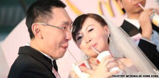 Hong Kong McDonald's To Offer Nuptial PackagesKatie Luscombe10/13/10 9:22amFiled to: bad romanceMcdonalds weddingHong KongWeddingsMcDonaldsFast Foodtweet30EditInvite manuallyPromoteDismissUndismissHideShare to KinjaToggle Conversation toolsGo to permalink Do you have especially fond memories of your 9th birthday party under the golden arches? Then McDonald's Hong Kong has the wedding package of your dreams! Plus, a Happy Meal can make a wonderful keepsake for your guests.Reply30 repliesLeave a reply