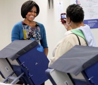 Michelle Obama praised the President's policies after voting in Chicago, thereby violating Illinois' law against campaigning inside a polling place. Robert Gibbs commented, "I don't think it would be much to imagine, the First Lady might support her husband's agenda."