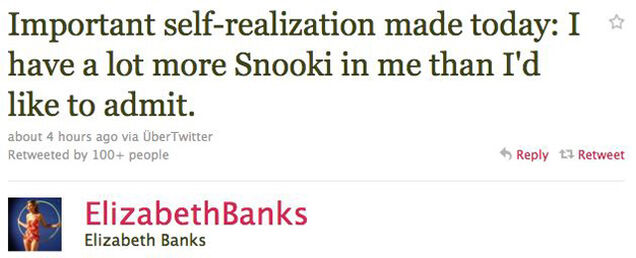 Today in Tweet Beat, Elizabeth Banks claims to have some Snooki in her. Plus, it's Thong Thursday of course.