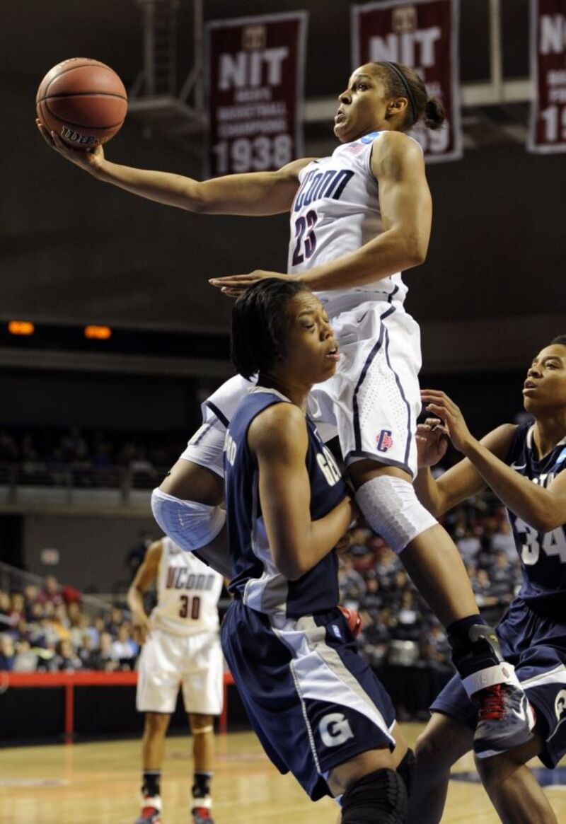 Air MooreErin Gloria Ryan3/27/11 6:48pmFiled to: Sunday thighlightsMaya MooreUconn women's basketballGeorgetownNcaa women5EditInvite manuallyPromoteDismissUndismissHideShare to KinjaToggle Conversation toolsGo to permalink Philadelphia, March 27: Connecticut forward Maya Moore (23) shoots over Georgetown forward Adria Crawford in the first half of an NCAA women's college basketball tournament regional semifinal. Connecticut won 68-63. (Image via AP)Reply5 repliesLeave a reply