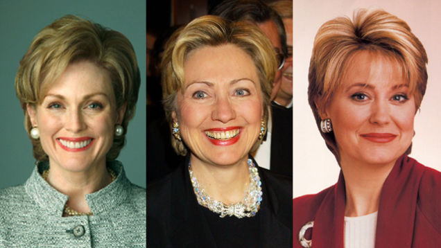Julianne Moore was supposed to be in The Special Relationship, an HBO film in which Dennis Quaid played Bill Clinton and Michael Sheen played Tony Blair. Moore had to drop out, due to scheduling conflicts, and Hope Davis ended up being HRC. But the folks at BlackBook found this image of Moore as Hillary in the portfolio of a makeup artist. She looks great! And if they ever need someone to play Jane Pauley, she could do that, too.