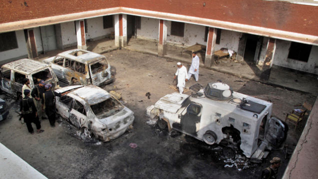 The Pakistani Taliban has taken responsibility for sending a husband and wife to perform a suicide attack on a police station in northwestern Pakistan (pictured above). According to the Associated Press, the two entered the station on Saturday saying they wanted to lodge a complaint, then attacked with grenades and machine guns once inside. After a five-hour standoff with police, the two blew themselves up, killing eight officers and two civilians.