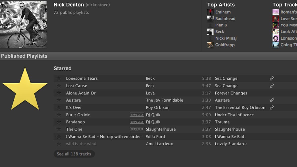 I joined Spotify this week. It's great! And because it links up with my Facebook account, I get to see what all my friends—like my boss Nick Denton—are listening to. Oh, Nick. I'm so embarrassed for you.