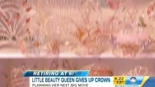 Who is Eden Wood's publicist? She keeps landing all these big deal interviews since announcing that she's retiring from beauty pageants at age 6. Today she was on The View, where she and her mother Mickie were grilled about their aspirations for her career. Eden, while cute, doesn't seem to have much to say for herself aside from what she was coached on beforehand (she couldn't even articulate what she wanted to do now that she's "retiring" other than express this vague idea about "superstardom" — which, for a young child, is totally understandable). Her mother Mickie, however, came off a little better as this is the first time we've ever heard a stage/pageant mom talk about saving money for her child's college education. That said, Joy Behar was still not having it.