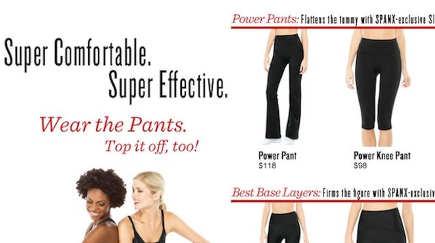 But it's a pretty expensive price to pay, especially if you plan to work out more than intermittently and your laundry cycle is anything like mine. Then again, when I suggested offhandedly that stretch pants might not be worth $98, however cleverly marketed, dozens of defenders emerged to tell me how great they make your ass look. Speaking of which, if Spanx or anyone else wants to make workout gear that won't get me wildly harassed on my way to yoga (sample recent dialogue, delivered in what I think was admiration: "You got a fat ass!"), I'll pay a hundred bucks for it. Maybe I'll consult these ladies.