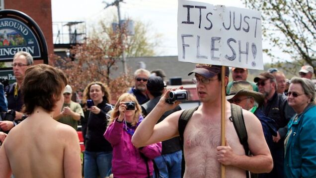 We know women have been protesting against the double standard of waist-up nudity for men and women. But this weekend in Asheville, North Carolina, a counterprotest told them to put their tops on. Unfortunately for the boob-covering contingent, two topless women showed up anyway, and when one went pantless too, she got arrested. Will we never be free of the flesh?