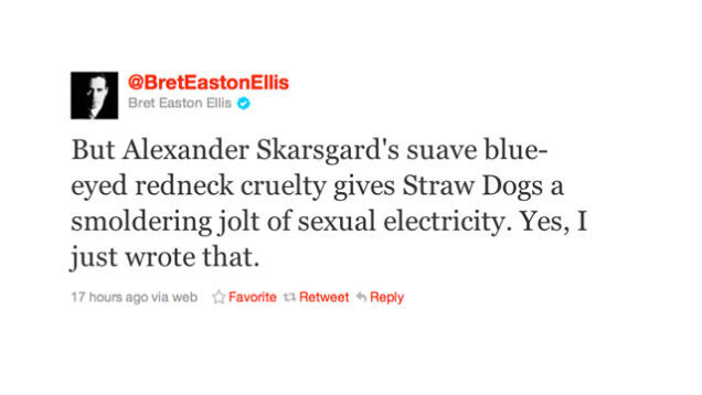 In today's Tweet Beat. Bret Easton Ellis is hot and bothered over Vampire Eric, all that glitters is gold for Khloe Kardashian, people have thoughts on the Giants-49ers game and Johnny Weir makes friends at the DMV.