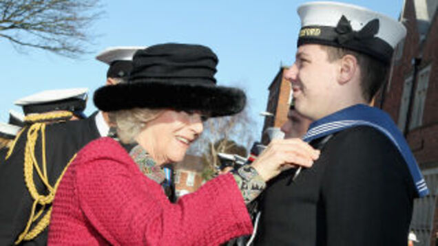PORTSMOUTH, ENGLAND - JANUARY 27: Camilla, Duchess of Cornwall presents medals to service personnel on Whale Island on January 27, 2012 in Portsmouth, England. The Duchess, who is Commodore in Chief of Royal Naval Medical Services, was presenting the service medals to medical personnel for service in Afghanistan. (Photo by Chris Jackson/Getty Images)