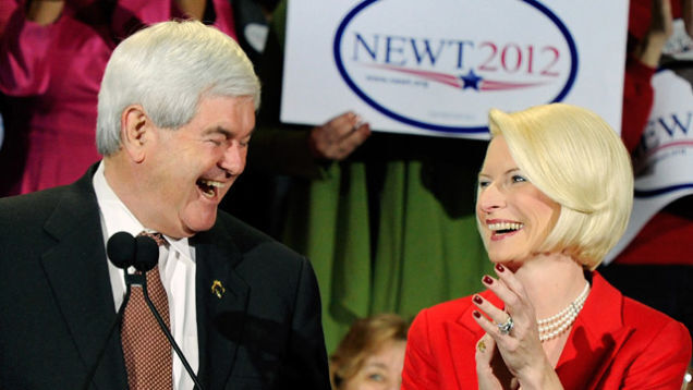 People in the room cheered, I guess because everyone wants a virile leader—and nothing says virility like screwing a new woman before you're even done with the old one. But people outside of the room are now left to shudder in horror. Best of luck enjoying your own romantic evening now that you know somewhere there's a plastic blonde bob being transformed into bedhead while a red-faced power fiend is in the general vicinity. (I know sex requires more than just being near each other, but that's as far as my brain will let me go.) Happy Valentine's Day from the Gingrich campaign!