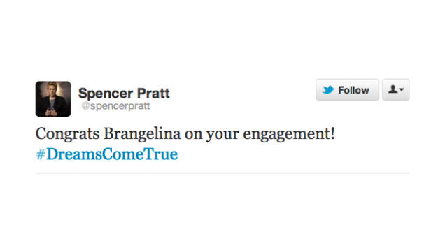 In today's Tweet Beat, Spencer Pratt is stoked on the Brangelina nuptials, Katy Perry is embracing 90s' nostalgia, L.A. gets rain and Lizz Winstead makes a great point.