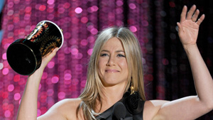 Jennifer Aniston is pretty happy that she's finally be crowned queen of dirt bags – winning the honor of Best On-Screen Dirt Bag at the MTV Movie Awards for her role as a complete horn bag in Horrible Bosses. "I mean, do you know how long I have tried to have somebody let me unleash my onscreen dirt bag?" she said as she tearfully accepted the prestigious popcorn statuette. "A long time, and thank god this category just popped up... so I would like to say thank you to the television show Friends for letting me unleash the inner sweetheart. And here's to [director] Seth Gordon for allowing me to be a dirt bag. Thanks, dirt bag." [Us]