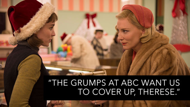 Carol, Todd Haynes’s film about how an unexpected (and unaccepted) love drastically changes the lives of two women in the 1950s, is slowly expanding to more and more theaters across the US. That means more national advertising. But, in a Friday report by Page Six, it was revealed that one particular spot for the film is being refused by ABC until distributor the Weinstein Company “provides more coverage on” Rooney Mara and Cate Blanchett during one particular shot of the two in bed together.