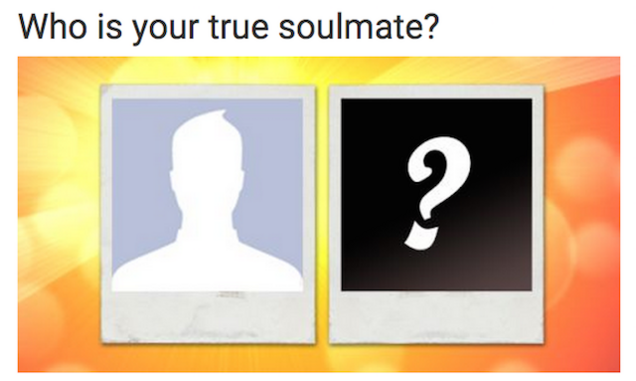 Apparently Facebook, a social media site largely used by long lost relatives, has been taken over by the Soulmate Quiz. People who’ve taken the quiz are confused because, well, they use Facebook and because most are being matched with their siblings and/or best friends. I took it several times and got matched with a friend and siblings. Clickhole, is this you?