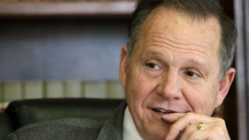 Moore, a Republican of the prehistoric model, has a long history of dickish, showboating behavior: In a 2002 child custody case, he ruled against the mother solely because she was a lesbian, writing in his ruling that homosexuality is "an inherent evil" and criminal at that, "destructive to a basic building block of society _ the family." The following year he commissioned a statue of the Ten Commandments for the Albama Supreme Court building, then refused to remove it, for which an ethics panel suspended him. Ann Coulter declared him Man of the Year for that, praising him for not ceding to "ACLU bullying" or "liberals' make-believe law." Yes, Alabama, that most liberal of states.