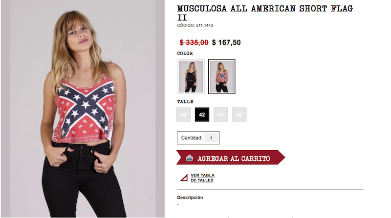 Argentina’s equivalent of Abercrombie is a store called John L Cook. It caters to hot teens dying to lose their virginity and manufactures t-shirts with meaningless identity-defining slogans on them like “Sea Salt” and “Grunge” and “Somewhere Between NY & LA.” They also have a lot of apparel featuring what seems to be the brand’s calling card: the whimsical, aesthetically-pleasing Confederate flag. What.