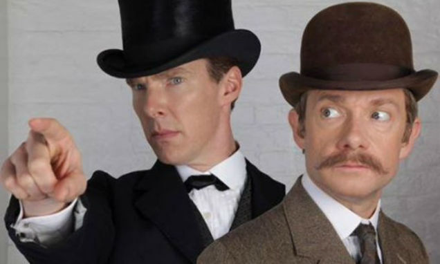 The BBC have released a picture of the stars of Sherlock, Benedict Cumberbatch and Martin Freeman, in Victorian garb for the first time, suggesting that time travel – or at least fancy dress – will play a part in 2015's Christmas special. The special is due to start filming in January, with a full season of the show to be screened the following year.