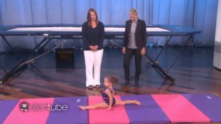 What’s insulting to my psyche, though, is the fact that this little girl used to be a total klutz. Her mom tells Ellen, “She was incredibly clumsy and I was hoping that gymnastics would help with it.”