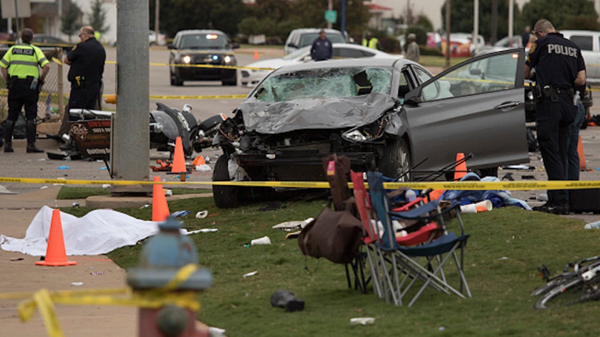 Stillwater Police Captain Kyle Gibbs told USA Today that “Chambers drove her silver Hyundai Elantra through several barriers and hit a parked police motorcycle before careening into the crowd.” Her car had not been involved in the parade.