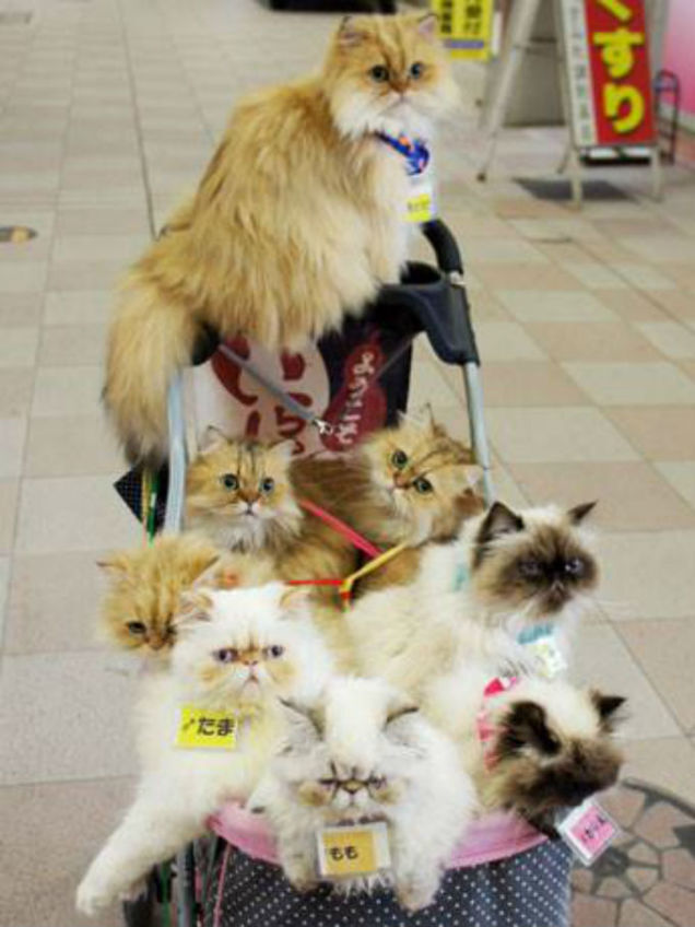 You know how at the end of Trading Places Eddie Murphy and Dan Ackroyd are toasting each other on that tropical island because they have zillions of dollars and are now living the dream? If that movie were filmed today the ending would be Ackroyd and Murphy walking strollers filled with nine cats. Because that is the actual real dream. A Japanese man who owns nine gorgeous Chinchilla and Himalayan cats is living it, every day. Via Rocket News: