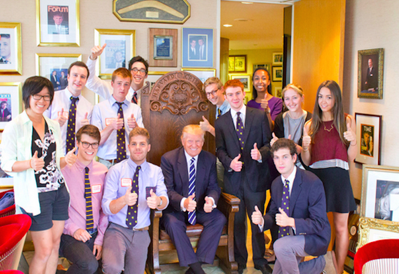 According to Salon, the ad was just another in a long-running series of practical jokes between The Lampoon (Harvard’s humor publication) and The Crimson (Harvard’s very important school newspaper which this one dude I know who went to Harvard read religiously), which have a good-natured rivalry with each other. The staff of The Lampoon took a picture with Trump at Trump Tower in New York earlier this summer. The photo depicts our future president sitting in the chair belonging to The Crimson’s president (stolen) and was used as a graphic for a fake website The Lampoon put up to try and convince people that The Crimson endorses Trump for president.