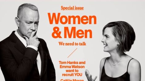 Watson shares the April cover with a man, Tom Hanks, who says she loves and respects for being “authentic.” In keeping with the issue’s theme, the majority of the Q&A focuses on feminism, starting with the ever-discussed question about women having fewer opportunities in Hollywood. Watson comes armed with percentages and statistics, and adds: