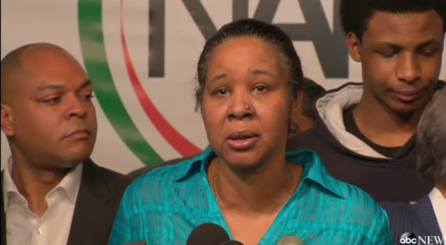 Esaw Garner addressed the media shortly after the grand jury's decision came down, telling reporters "I'm determined to get justice for my husband." She was joined by Rev. Al Sharpton and members of her family, including her late husband's son Emory and mother Gwen Carr.