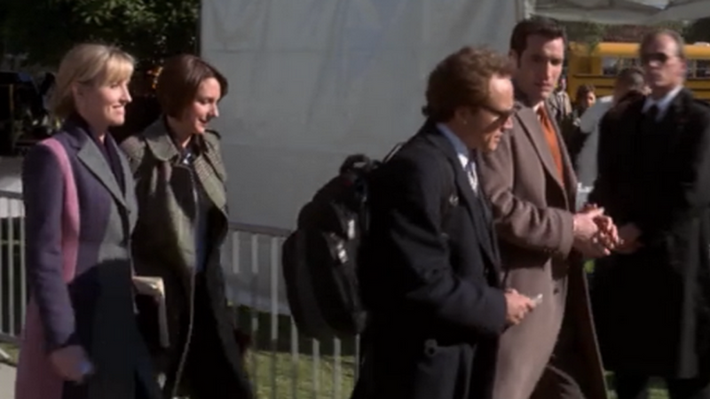 Hi, I've been looking for a particular coat for several years now. In Season 7 of The West Wing, character Donna Moss (played by Janel Moloney) wears a stunning coat. I've attached pictures here. Any idea about the designer?