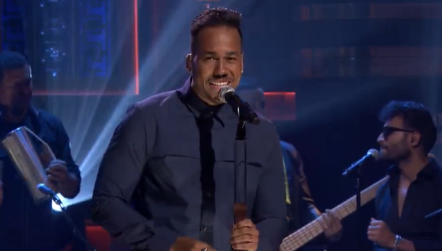 Thursday night on The Tonight Show, New York bachata king Romeo Santos performed giant love jam "Eres Mía" with his full band and showed why he is quickly becoming America's sweetheart.