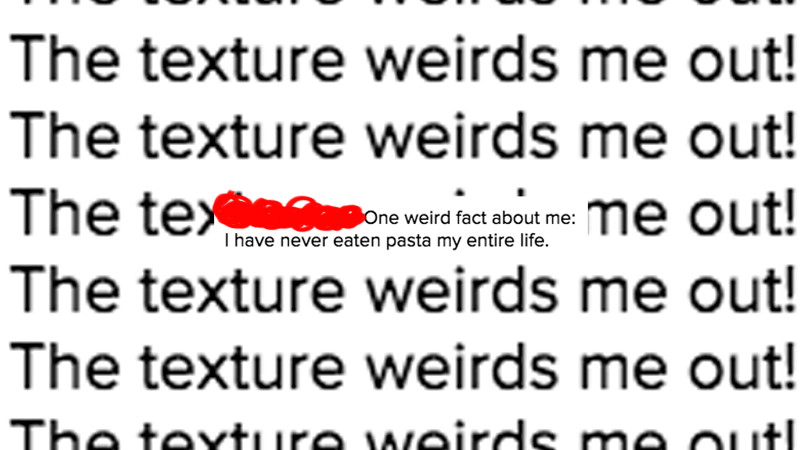 On Wednesday afternoon, a cast member of MTVs long-canceled reality show The Hills took to Instagram to reveal that she has never eaten pasta—voluntarily or involuntarily—by writing, “One weird fact about me: I have never eaten pasta my entire life. The texture weirds me out!”