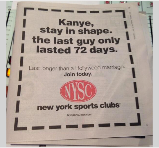 Of course an ad implying men need to work out to keep their shallow gold-digging significant others interested would run in the New York Post. Next.