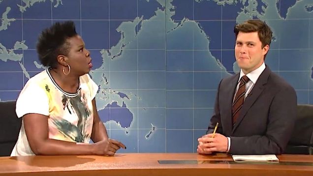 Leslie Jones certainly seems to take a lot of joy in calling Weekend Update anchor Colin Jost a “refreshing Peppermint Pattie” and a “sexy-ass blizzard.” It’s hard to tell where commitment to a bit ends and desire begins, especially when all these compliments are edited together into an arousing compilation.
