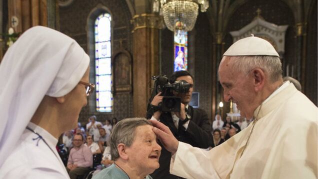 Pope Francis touches the faithful in Turin, Italy on June 21. Photo via AP Images