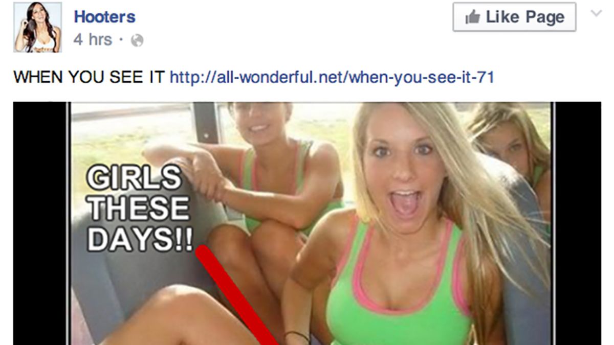 Hooters, the family friendly establishment that serves refreshing fried pickles and provides a warm and friendly atmosphere where the waitresses pretend to like you (this is very awkward when it happens) has posted an awful rape joke to their Facebook page.
